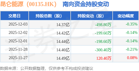 本站消息,12月3日南向资金减持498.8万股昆仑能源(00135.HK)。近5个交易日中股票中的配资,获南向资金减持的有4天,累计净减持1077.0万股。近20个交易日中,获南向资金减持的有12天,累计净减持2658.4万股。截至目前,南向资金持有昆仑能源(00135.HK)14.37亿股,占公司已发行普通股的16.59%。
